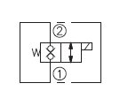 失电时,此阀截止油液双向流动; 电时,②到①,①到②互通。