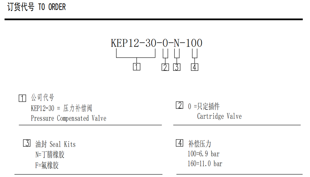KEP12-30是弹簧截止阀,只有在①处到②处的开启压力大于③处的总压力和弹簧预压力之和时,滑阀才会移动,油液流向②口。当③口无压力时,①处的压力超过弹簧预压力,油液将从①流向②。